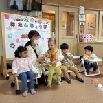 1歳児さんは、袋に絵の具をつけてペタペタと着物の模様を描きました✨